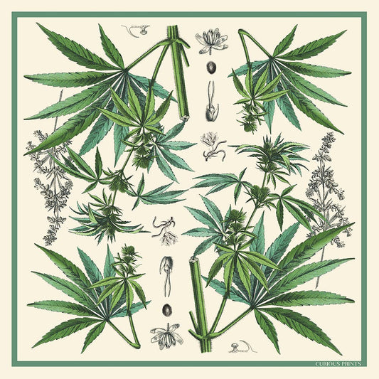 100% Silk Scarf Botanical Marijuana Cannabis Bandana 17x17