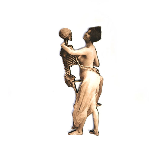 Vintage Erotica Magnet - Dancing with Skeleton - Wood